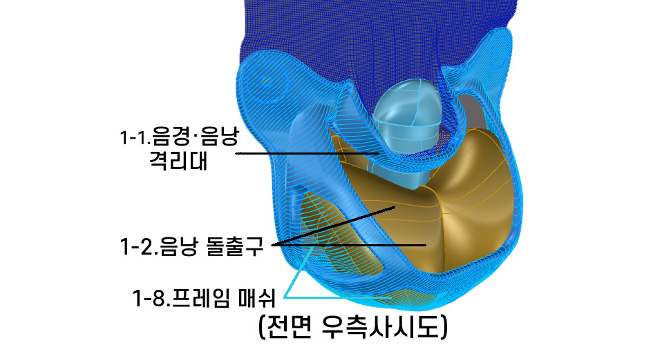 ※ 양 다리 사이, 의자 좌판이 주는 압력을 견뎌낼 만큼 경도 ※