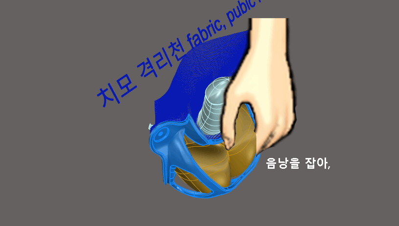 ('음경구'로부터 음경을 적당히 잡아당겨서 빼준다.)